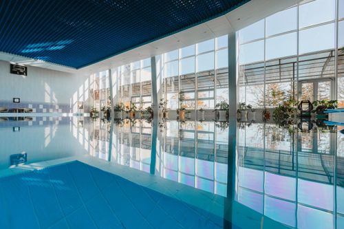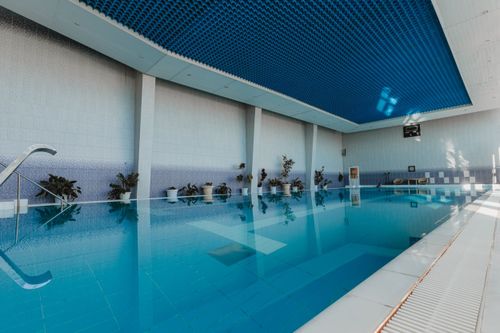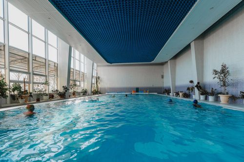 Современный плавательный комплекс санатория им. С.М. Кирова предназначен для лечебных процедур и активного отдыха. Пространство бассейна соответствует всем санитарно-гигиеническим нормам, вода проходит многоступенчатую систему очистки.