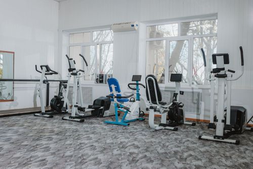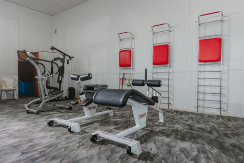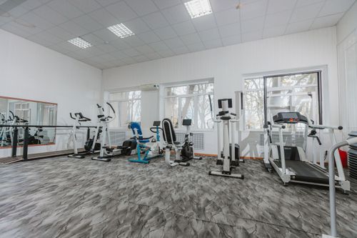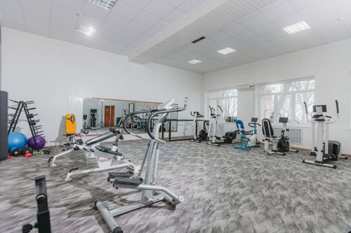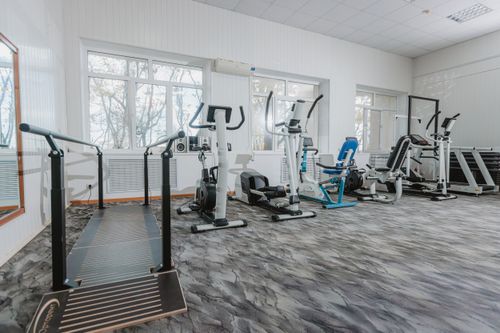 Тренажерный зал санатория оснащен современными кардио- и силовыми тренажерами ведущих мировых производителей. Просторное помещение с кондиционером и панорамными окнами создает оптимальные условия для тренировок.