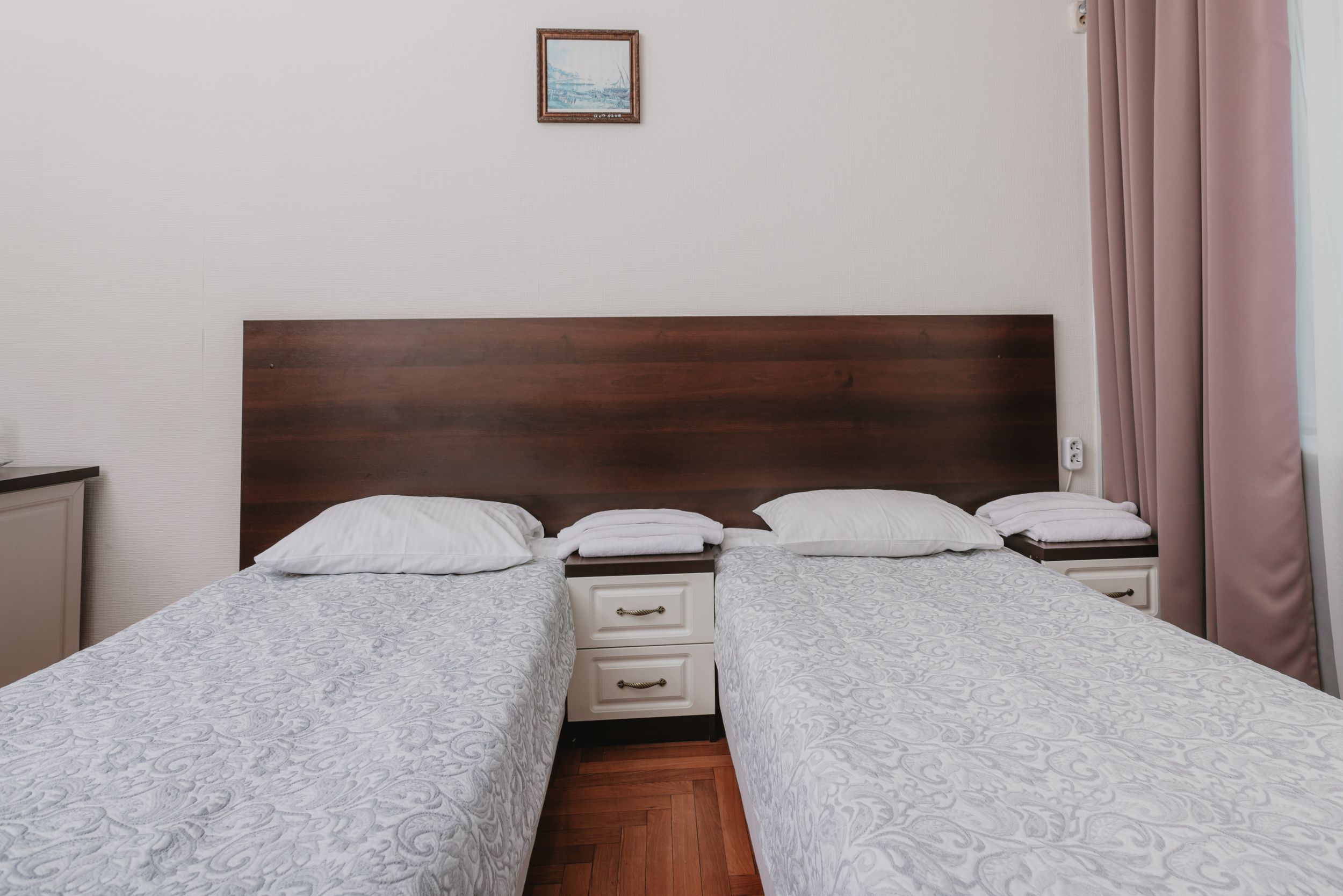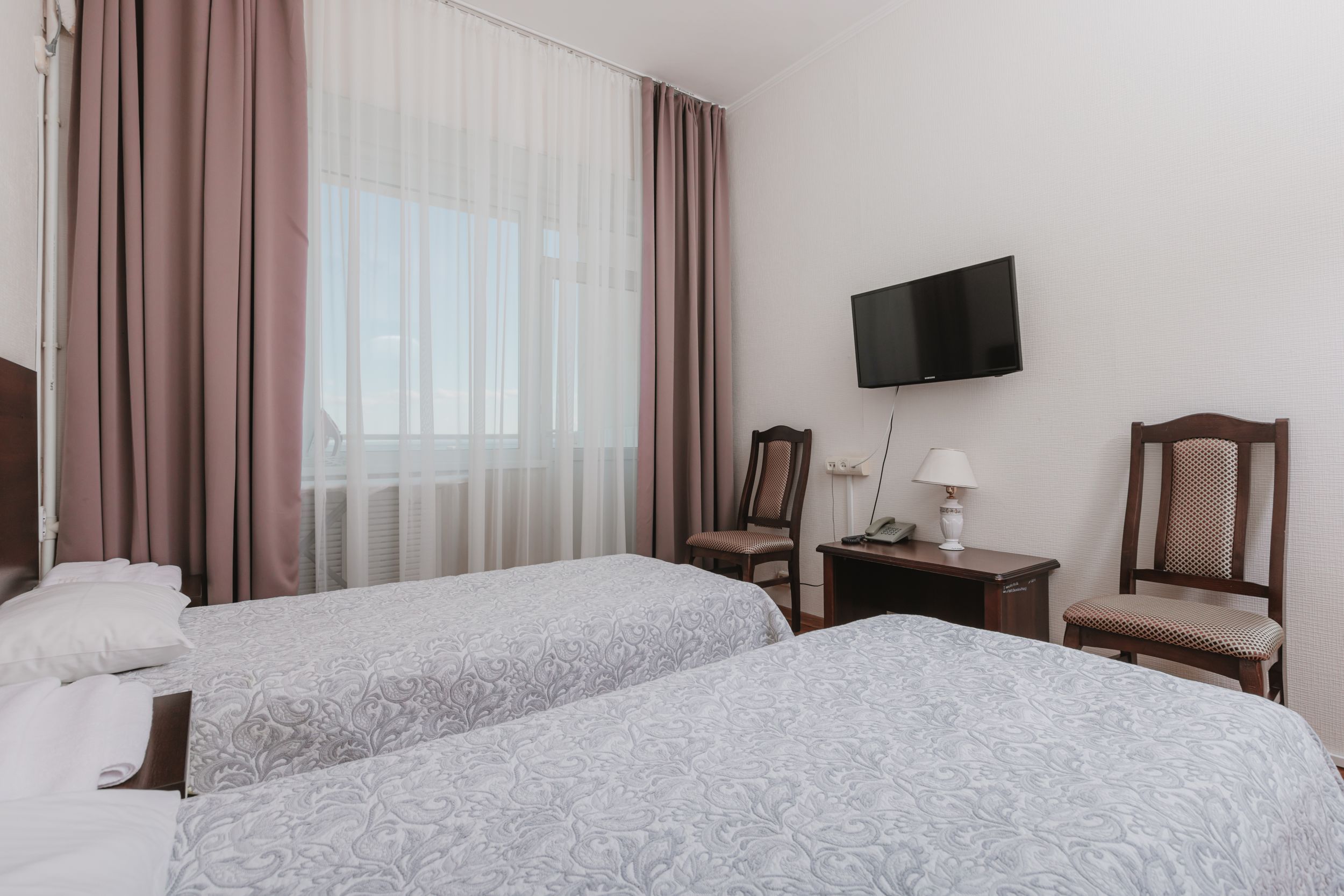 Стандартный двухместный номер - это уютное однокомнатное пространство, созданное для спокойного отдыха и комфортного проживания в период лечения или восстановления. Светлые тона в оформлении, продуманная планировка и использование натуральных материалов формируют атмосферу гармонии и расслабления.