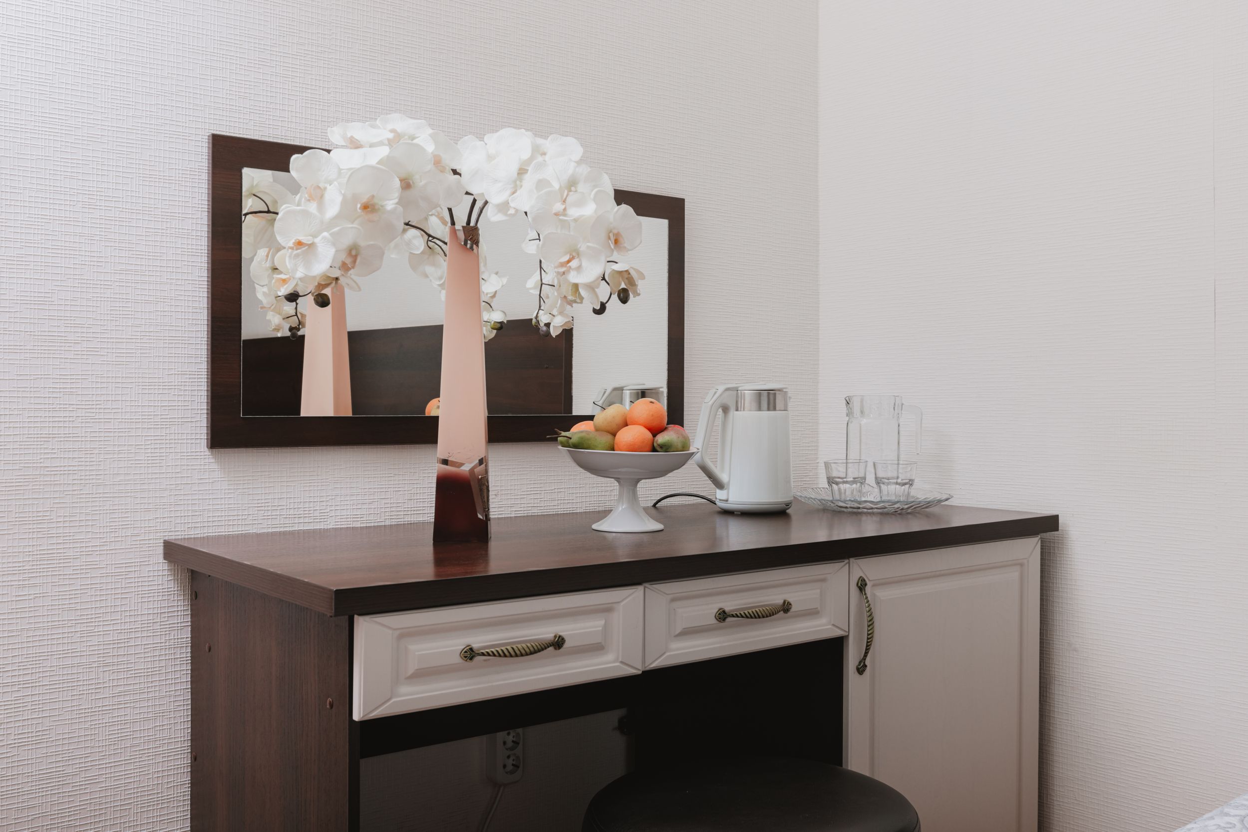 Номер поддерживает идеальные условия для тишины и спокойствия благодаря качественной звукоизоляции, а мягкое регулируемое освещение создаёт приятную обстановку в любое время суток. Ванная комната оформлена аккуратно и оснащена всем необходимым для ежедневного ухода, обеспечивая дополнительный комфорт.